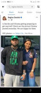 In a post made via her Facebook page, Regina hinted that Davido and Chioma might be getting married very soon.