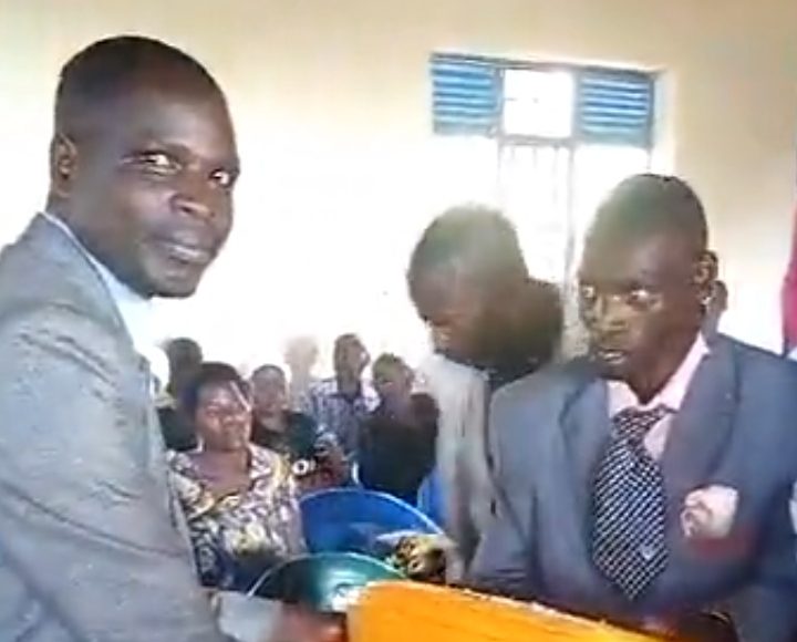In the short but captivating video clip, the guest, holding nothing but an empty yellow jerrycan, confidently walked up to the bride and groom.